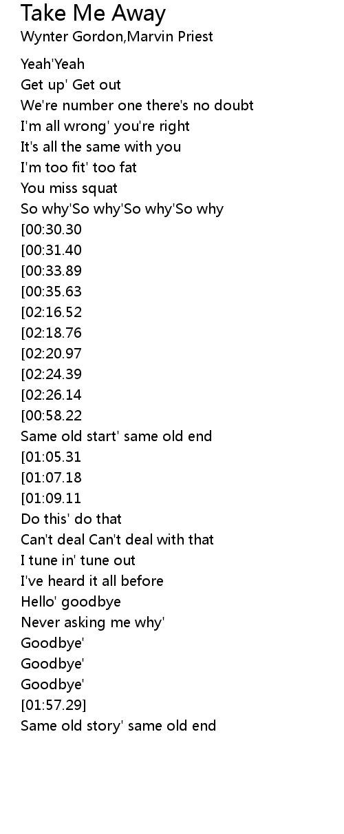 Hey' take me away |