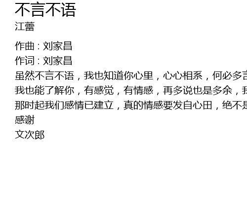 | sui ran bu yan bu yu, wo ye zhi dao ni xin li, xin xin xiang xi, he bi duo yan you duo yu, ni bu dui wo shi yi, | |