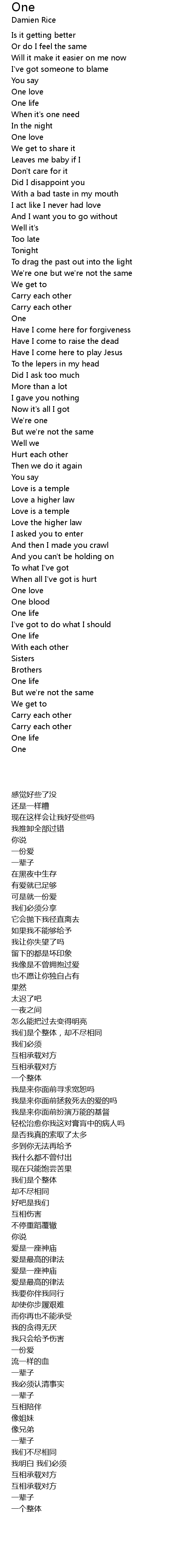 One love |