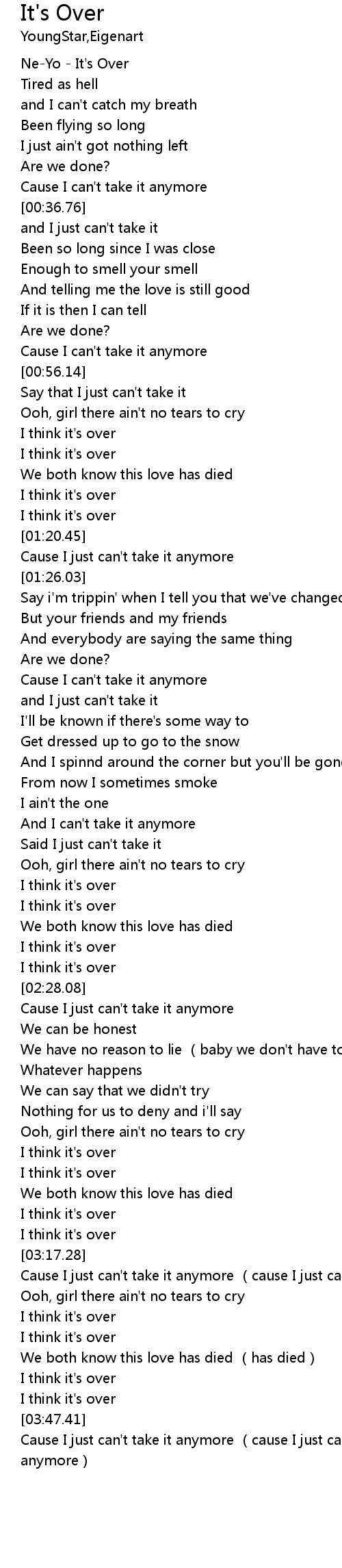 | [00:01.70] | Ne-Yo - It's Over |