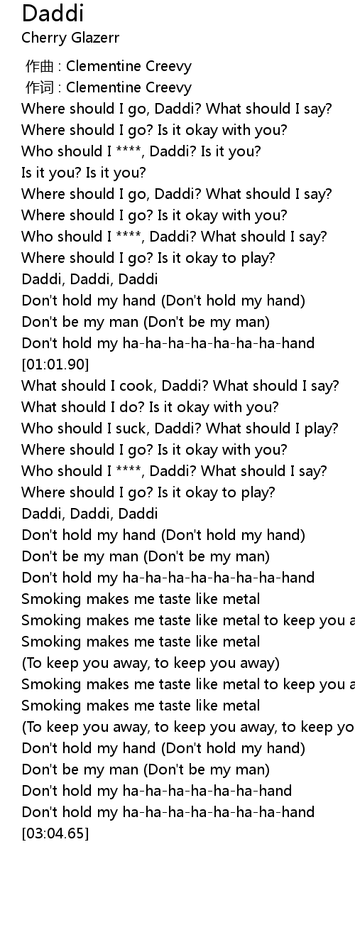 | [00:08.82] | Who should I ****, Daddi? Is it you? |