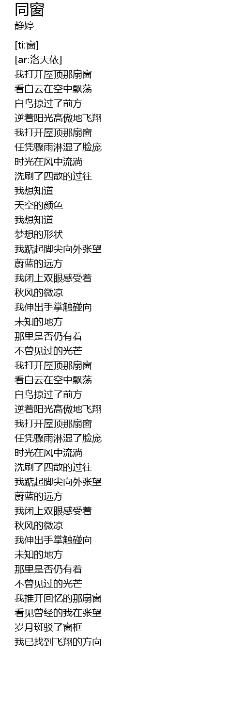 | [00:25.812] | 我打开屋顶那扇窗 |