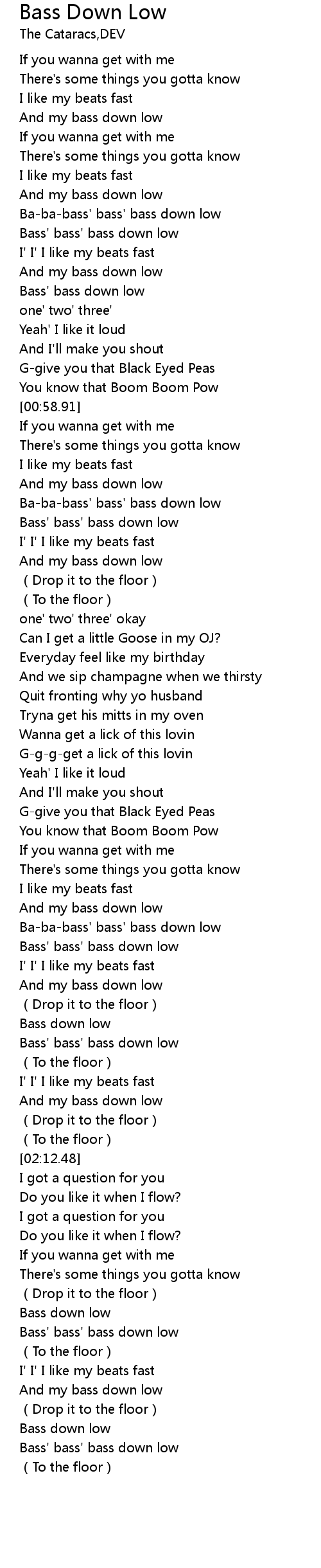 | [01:56.75] | Ba-ba-bass' bass' bass down low |