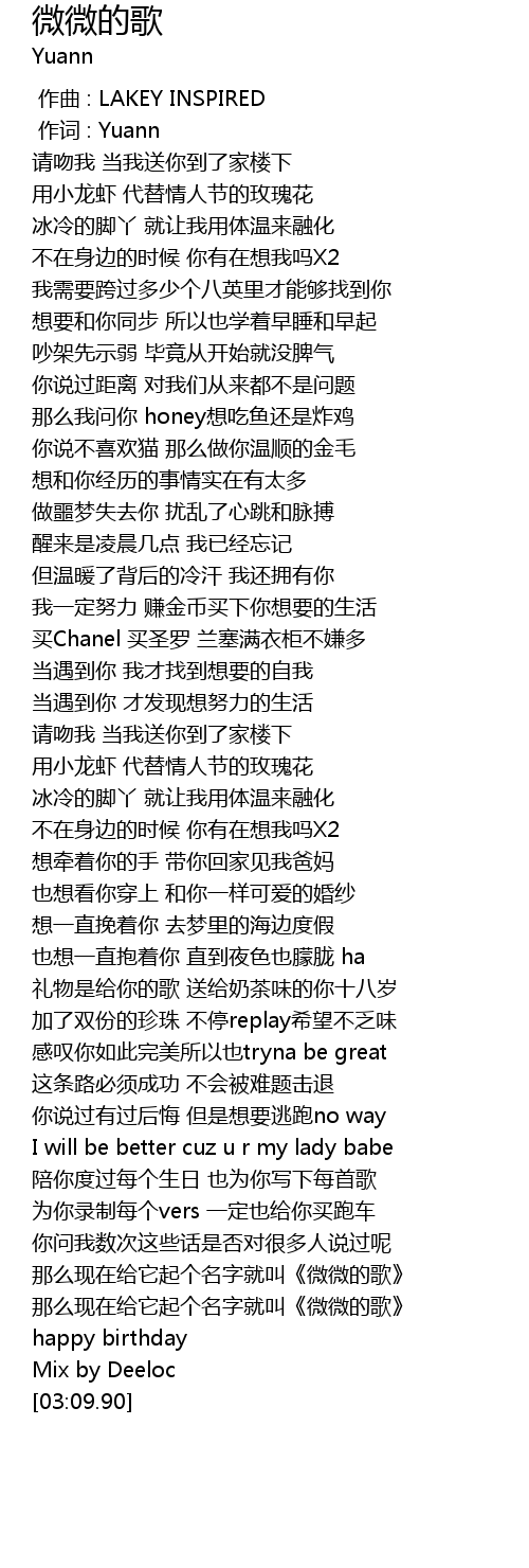| [02:47.92] | 那么现在给它起个名字就叫《微微的歌》 |