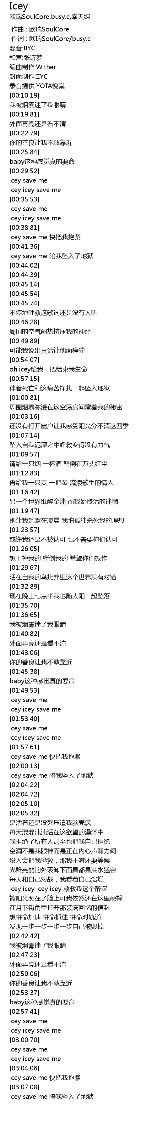 | [02:01.59] | icey save me péi wǒ zhuì rù le dì yù |