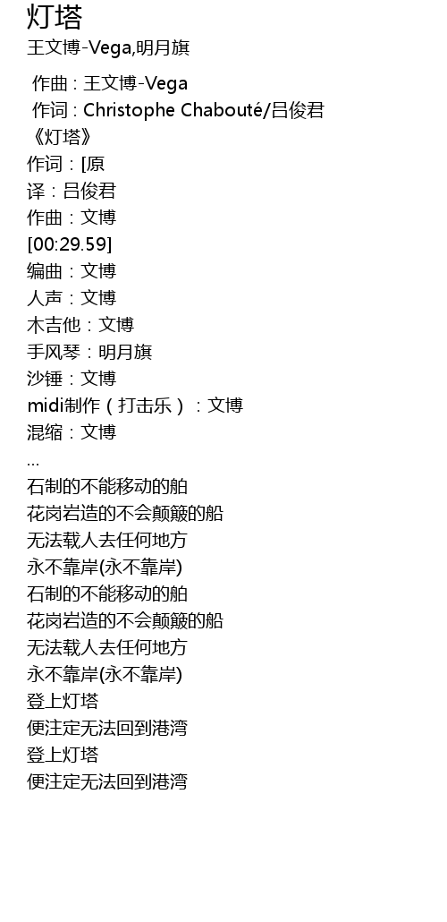 | [00:05.65] | 《灯塔》 |