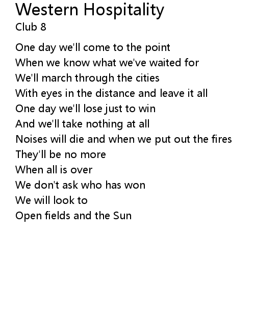 | Song | Western Hospitality |
