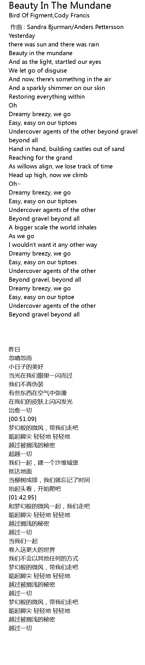 | [00:17.62] | Beauty in the mundane |