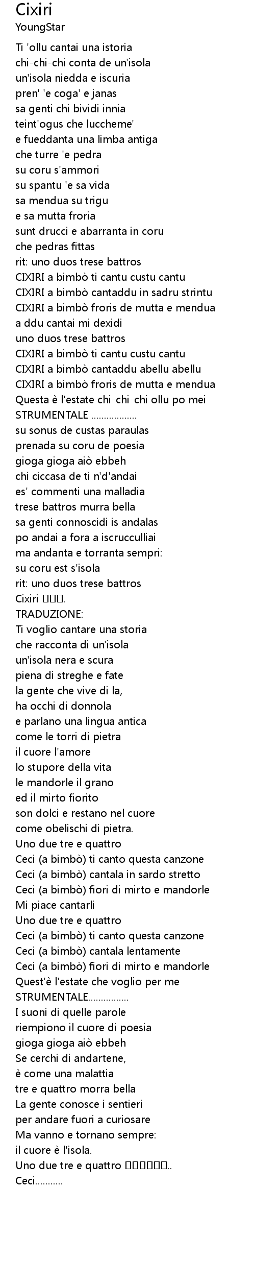 | CIXIRI a bimbo ti cantu custu cantu | |