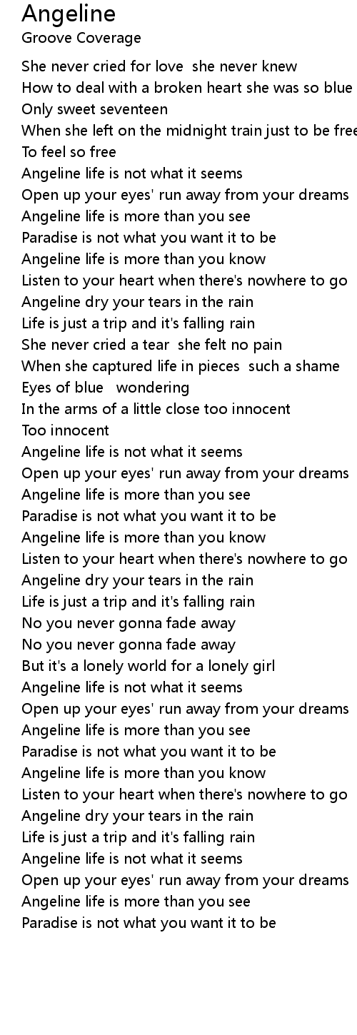 Angeline dry your tears in the rain |