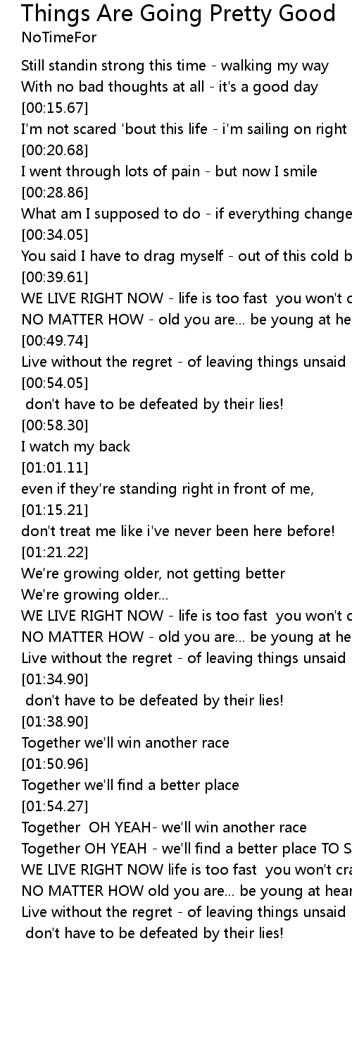 WE LIVE RIGHT NOW - life is too fast you won't crash down |
