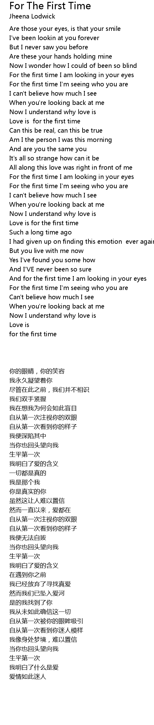 For the first time I am looking in your eyes |