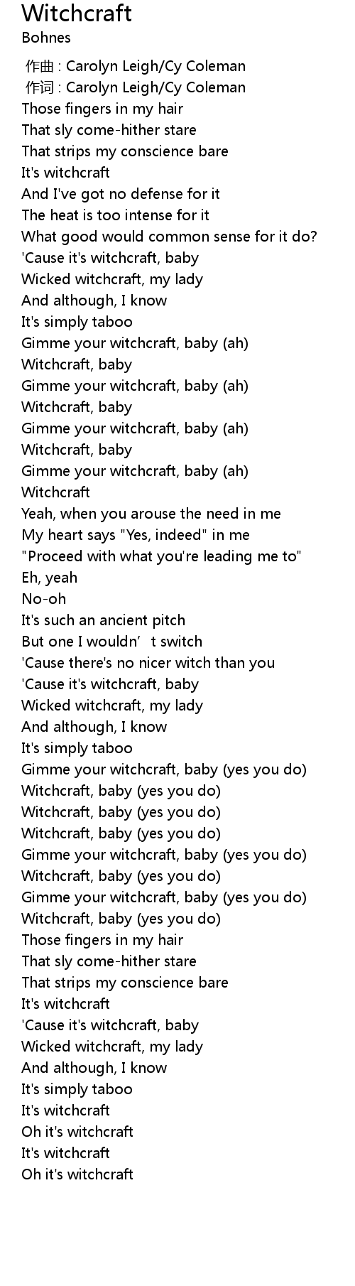 | [02:36.53] | Gimme your witchcraft, baby yes you do |