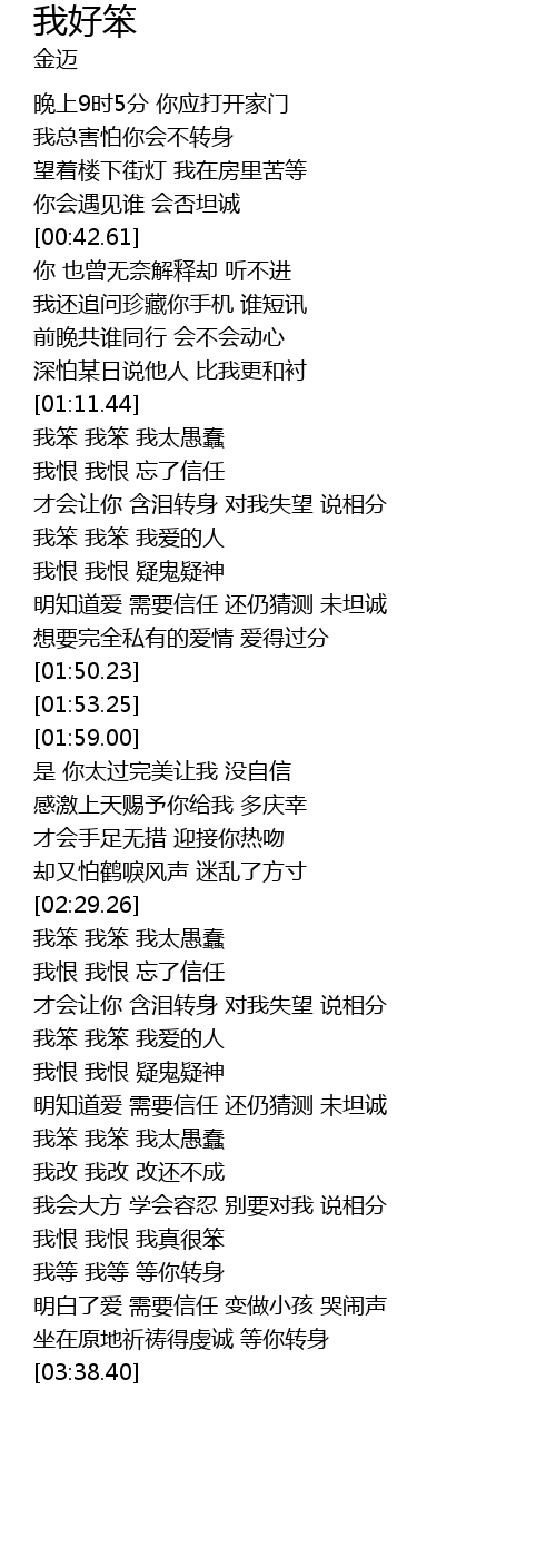 | [02:58.32] | 我笨 我笨 我太愚蠢 |