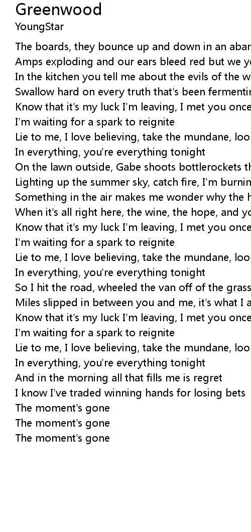 Something in the air makes me wonder why the hell I'd care about tomorrow |