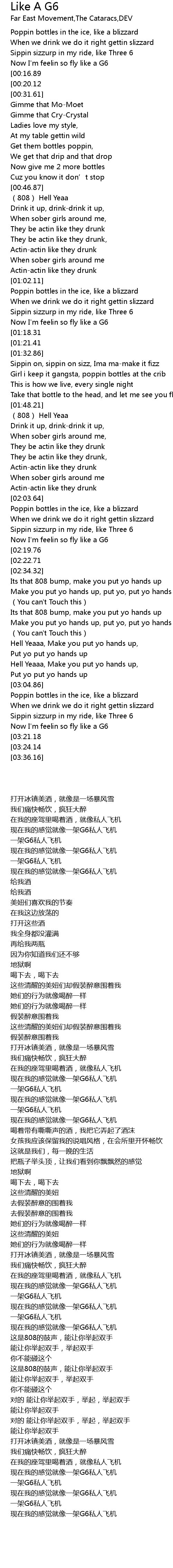 | [02:30.40][02:22.71] | Now I' m feelin so fly like a G6 |
