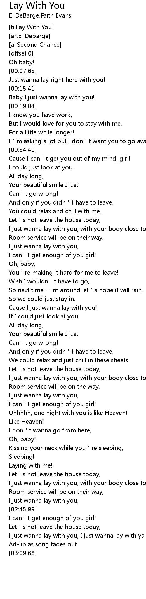 | [02:52.49] | I just wanna lay with you, I just wanna lay with ya baby. |