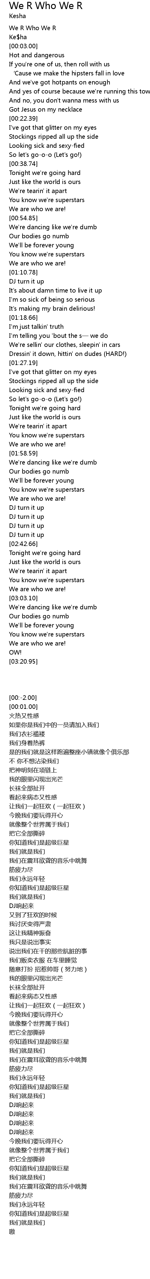| [00:01.00] | Ke$ha |