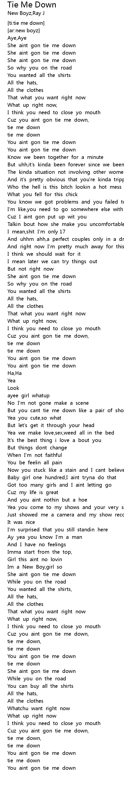 | [02:29.27] | You aint gon tie me down |