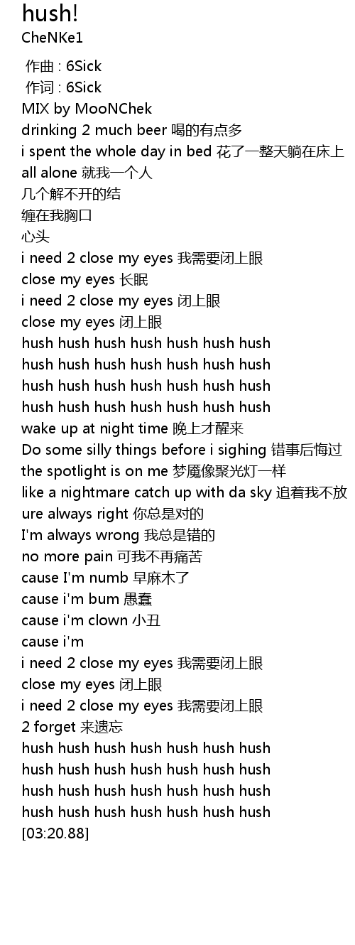 | [01:07.94] | hush hush hush hush hush hush hush |