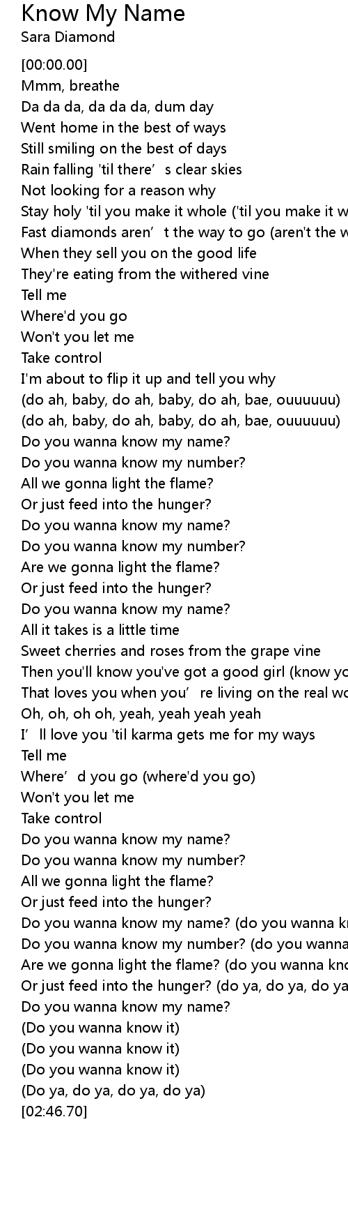 | [01:07.81] | Do you wanna know my name? |