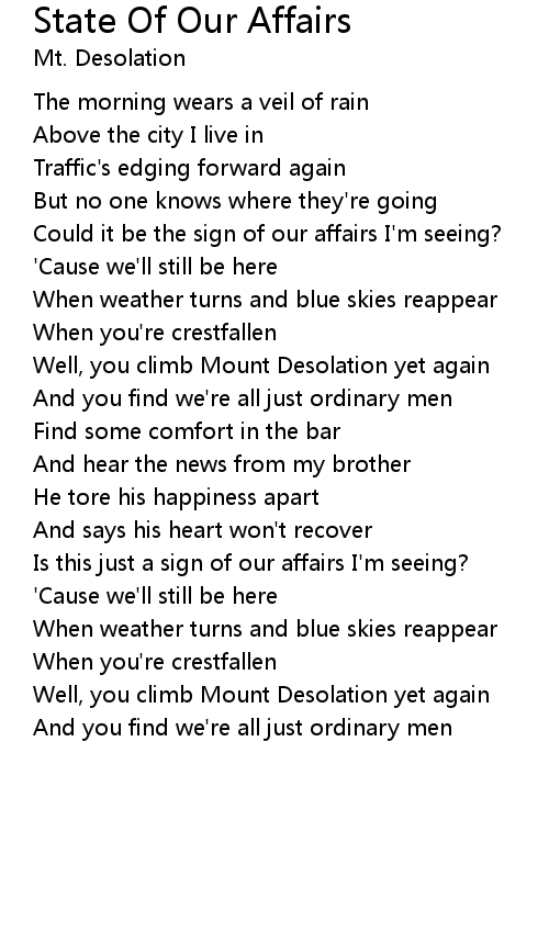 Is this just a sign of our affairs I'm seeing? |