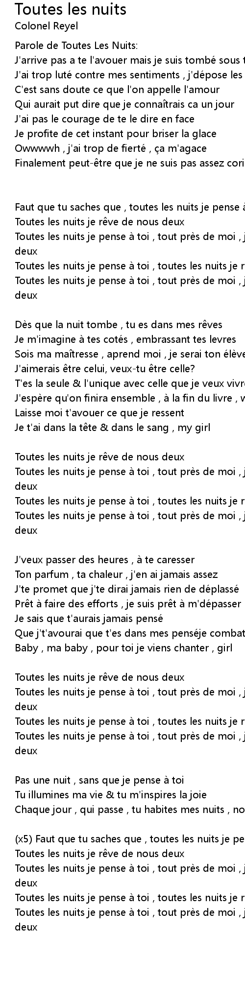 | Parole de Toutes Les Nuits: | |