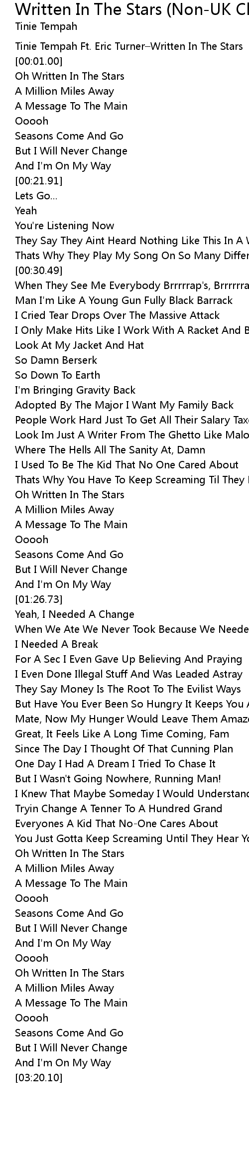 | [00:00.50] | Tinie Tempah Ft. Eric Turner Written In The Stars |
