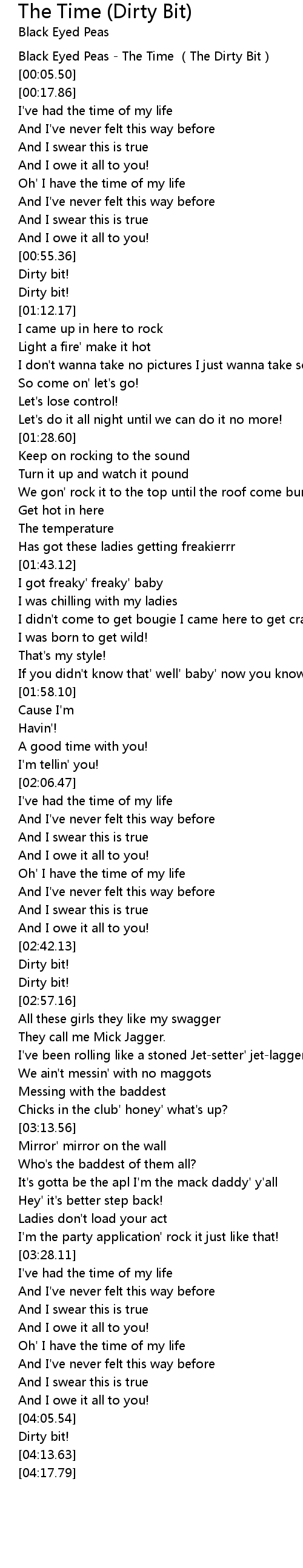 | [00:04.50] | Black Eyed Peas - The Time (The Dirty Bit) |