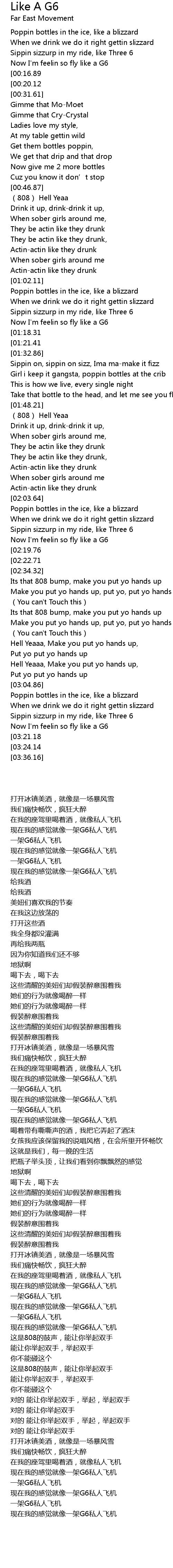 | [00:24.56][00:16.89] | Like a G6, Like a G6 |