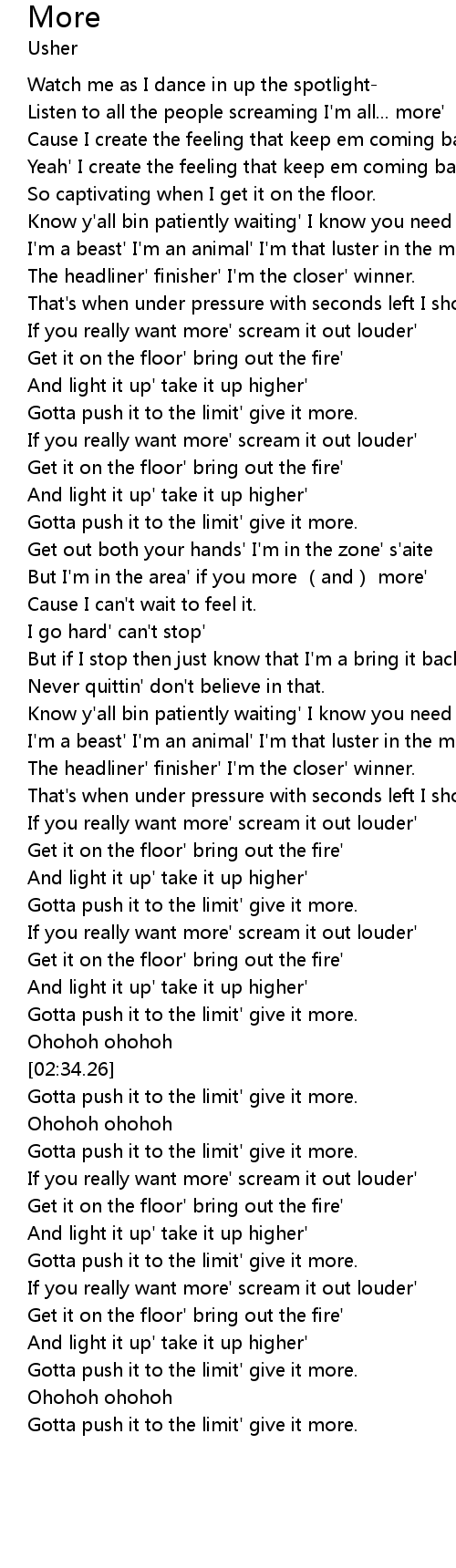 | [02:37.12] | Gotta push it to the limit' give it more. |
