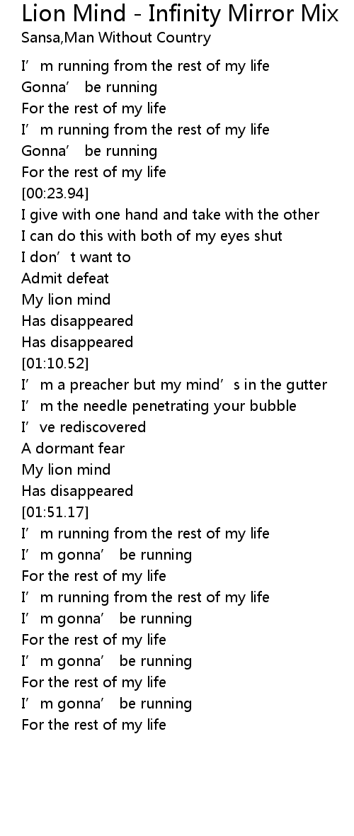 | [01:00.51] | My lion mind |