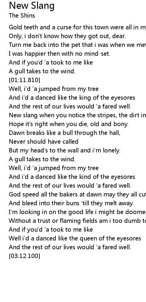| [01:59.300] | And i' d a danced like the kind of the eyesores |