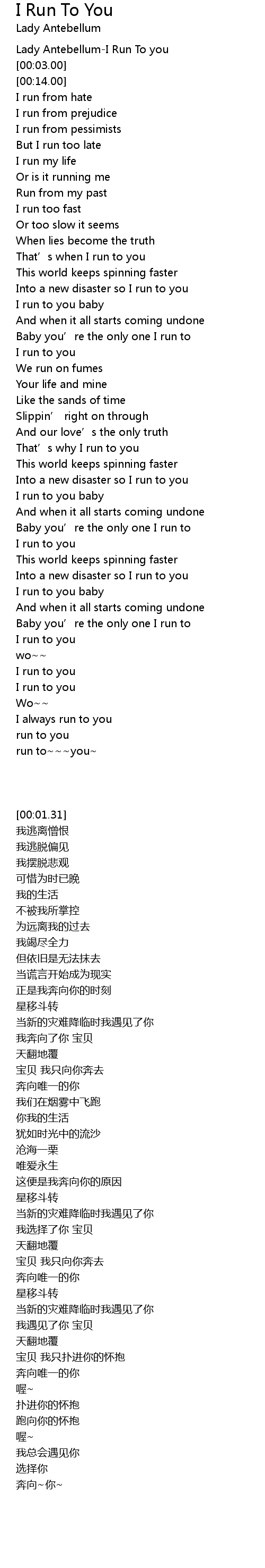 | [00:01.31] | Lady AntebellumI Run To you |