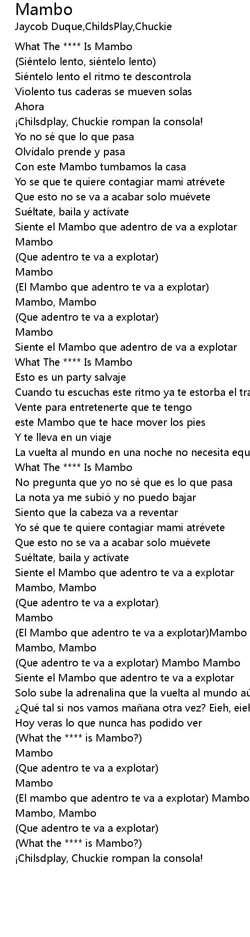 | [01:35.06] | El Mambo que adentro te va a explotar Mambo Mambo Mambo |