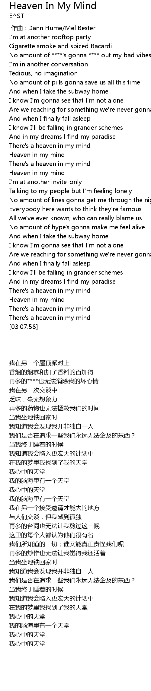 | [01:35.89] | Heaven in my mind |
