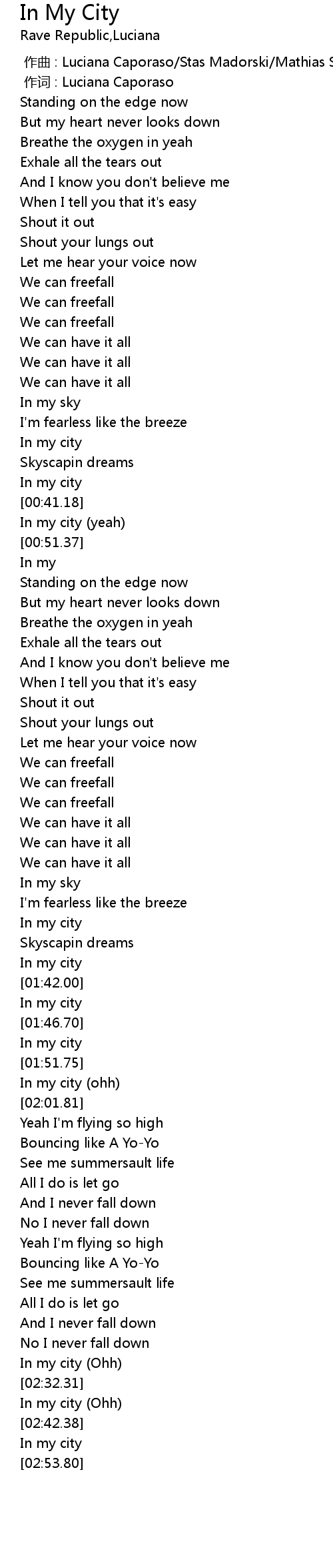 | [02:41.09] | In my city Ohh |