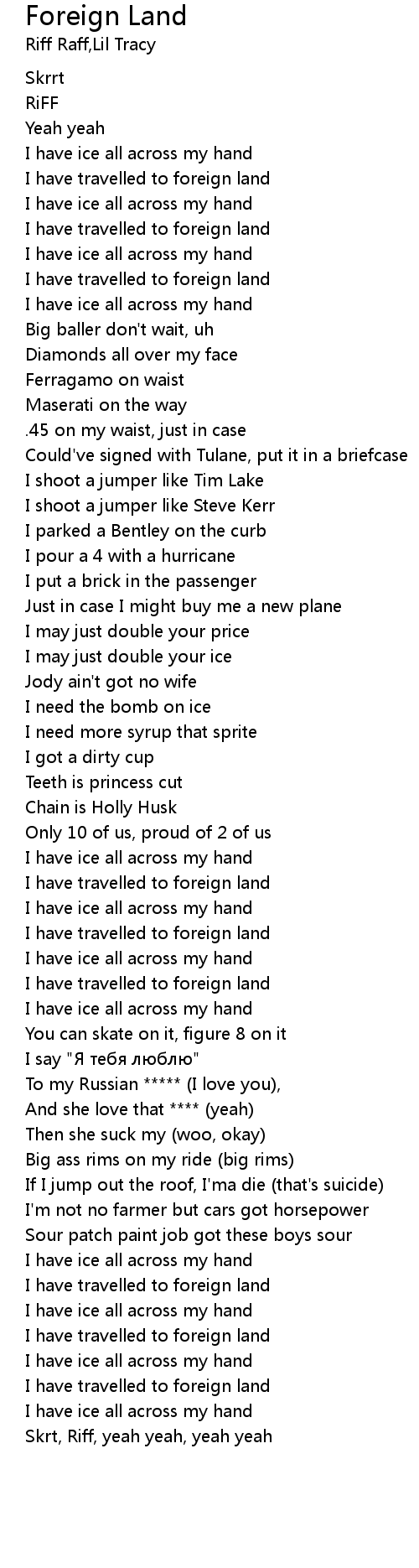 | [02:34.89] | Skrt, Riff, yeah yeah, yeah yeah |