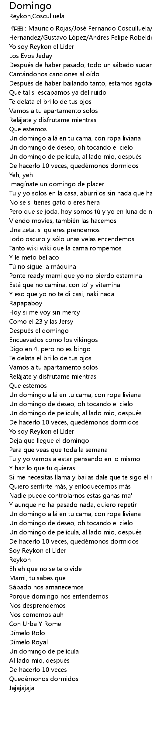 | [00:39.76] | Un domingo allá en tu cama, con ropa liviana |