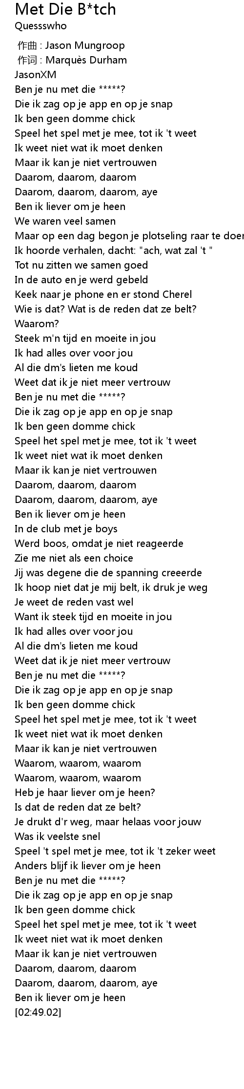 | Song | Met Die B*tch |