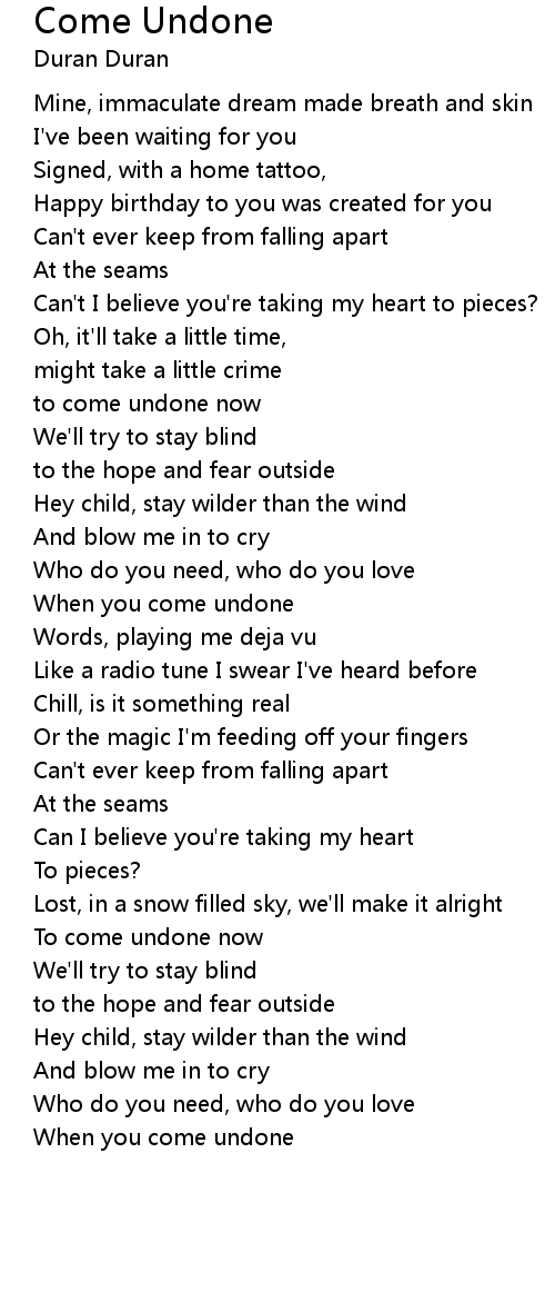to come undone now |