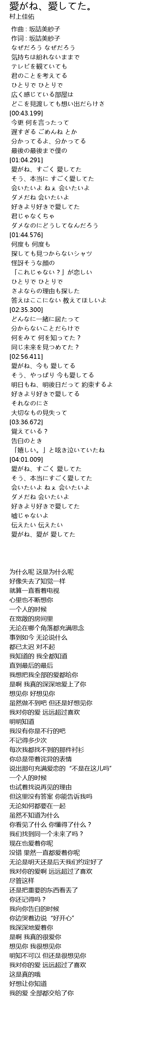 | [04:36.511] | 愛がね、愛が 愛してた |