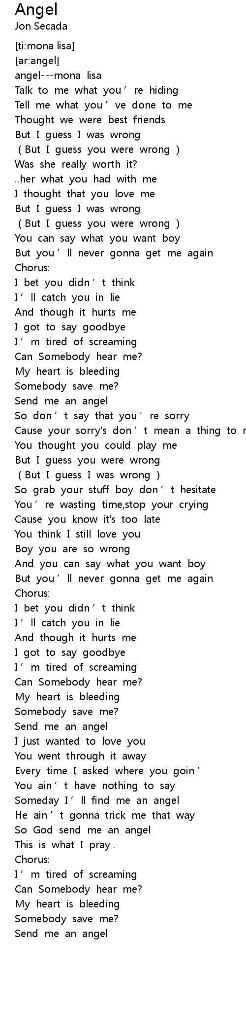 | [01:16.199] | Send me an angel |