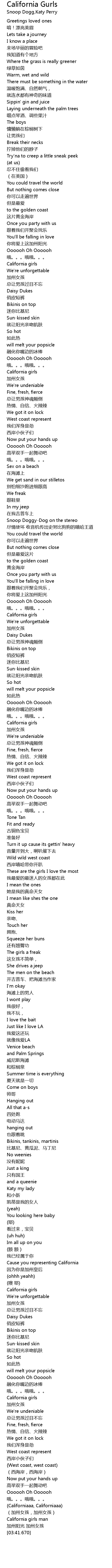 | [01:59.350] | 加州女孩 |