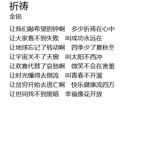 | 让我们敲希望的钟啊 多少祈祷在心中 | |