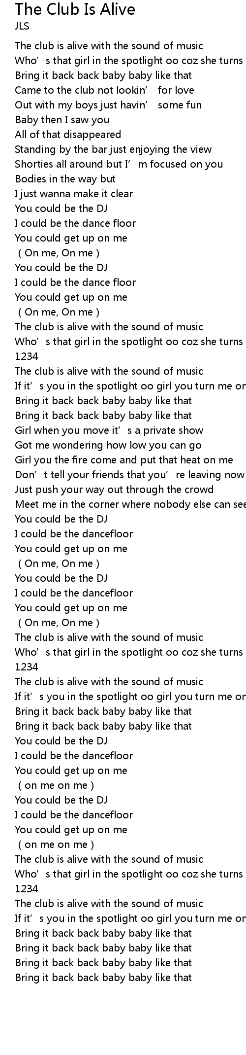 | Song | The Club Is Alive |