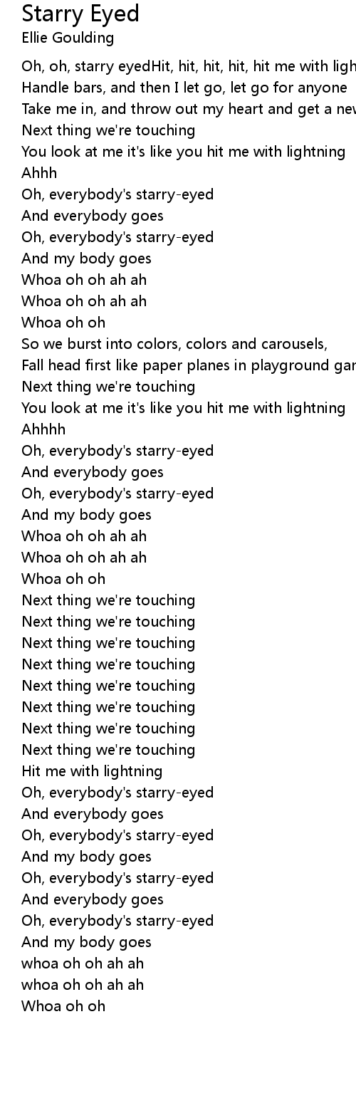 | [00:11.158] | Oh, oh, starry eyedHit, hit, hit, hit, hit me with lightning |