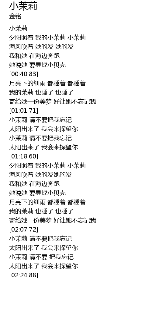 | [02:08.60] | 小茉莉 请不要把我忘记 |