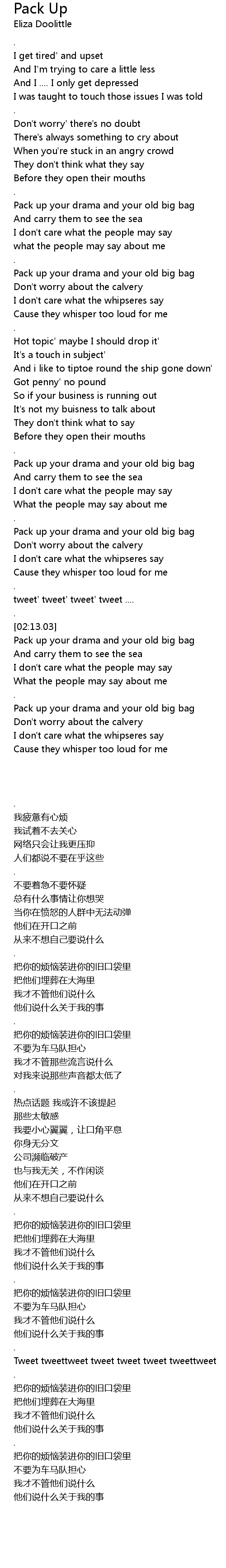 Pack up your drama and your old big bag |