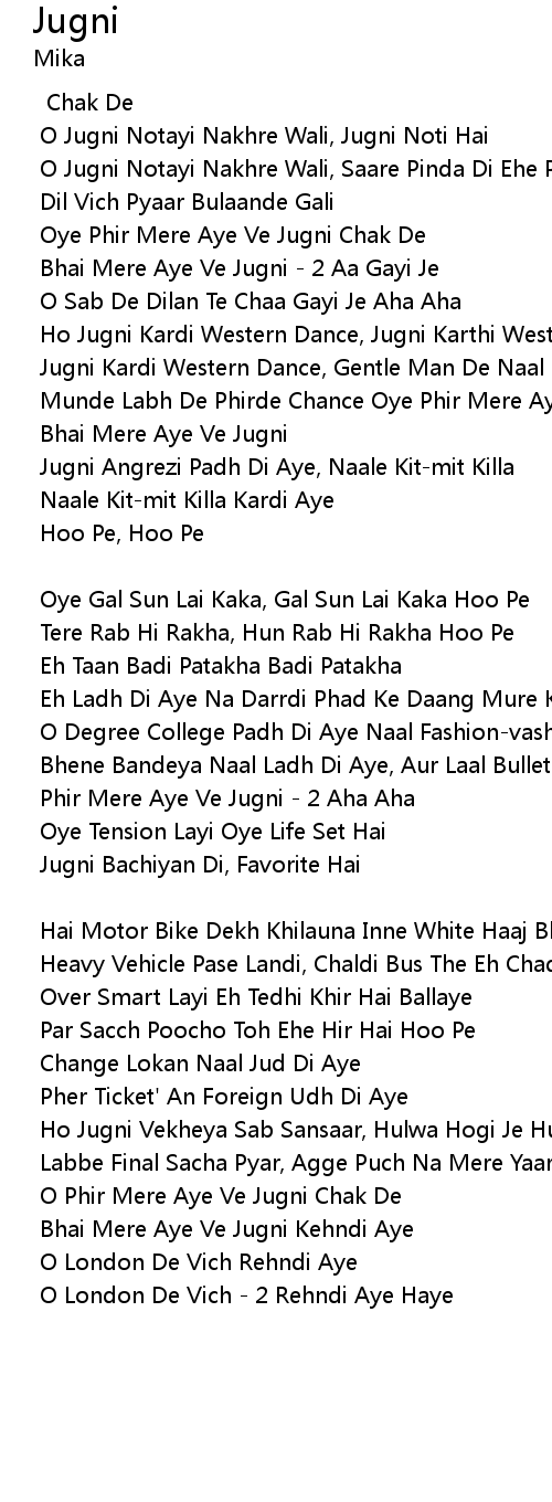 Munde Labh De Phirde Chance Oye Phir Mere Aye Ve Jugni |